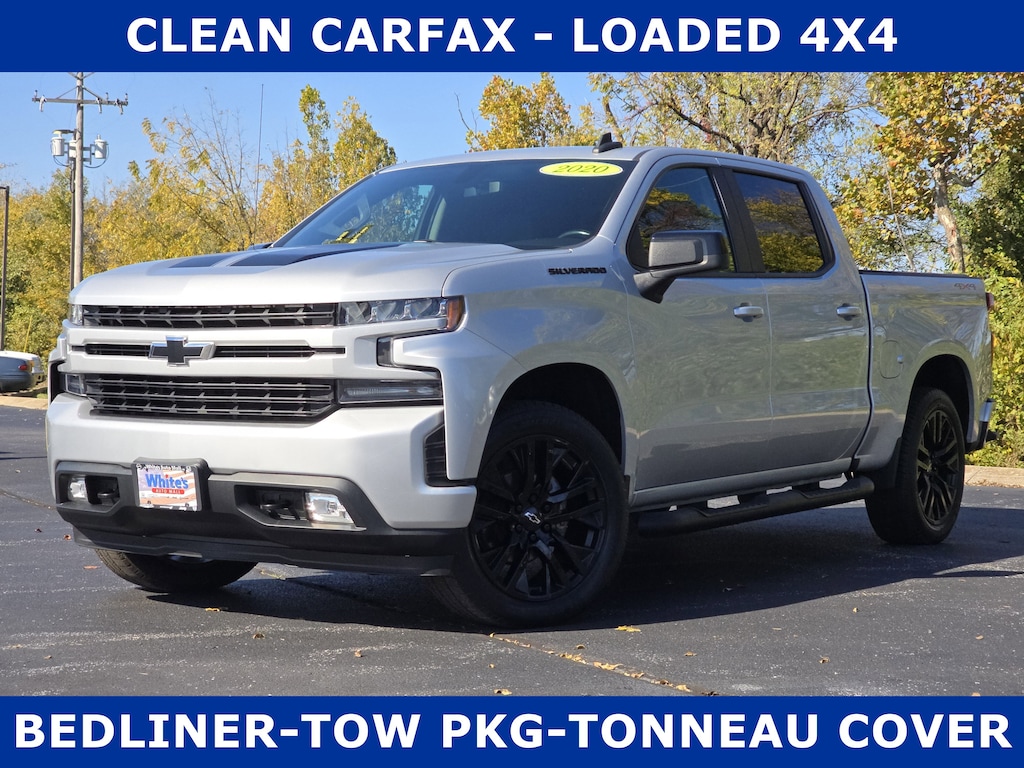CLEAN CARFAX, APPLE CARPLAY, ANDROID AUTO, HEATED SEATS, HEATED STEERING WHEEL, BEDLINER, TOW PACKAGE, TRAILER BRAKE CONTROLS, RUNNING BOARDS, APPLE CARPLAY, ANDROID AUTO, BACKUP CAMERA. Find exceptional value in this 2020 Chevrolet Silverado 1500 RST, located in Hopkinsville, KY. With a powerful 5.3L V8 gasoline engine and dependable 4WD, this truck delivers capability and confidence on any terrain. Boasting 0 miles and low mileage, this Chevrolet Silverado combines like-new condition with the advantage of a pre-owned vehicle price. You'll enjoy modern tech and convenience features, including Back-Up Camera, Android Auto, Apple CarPlay, and a Heated Steering Wheel for comfortable driving year-round.