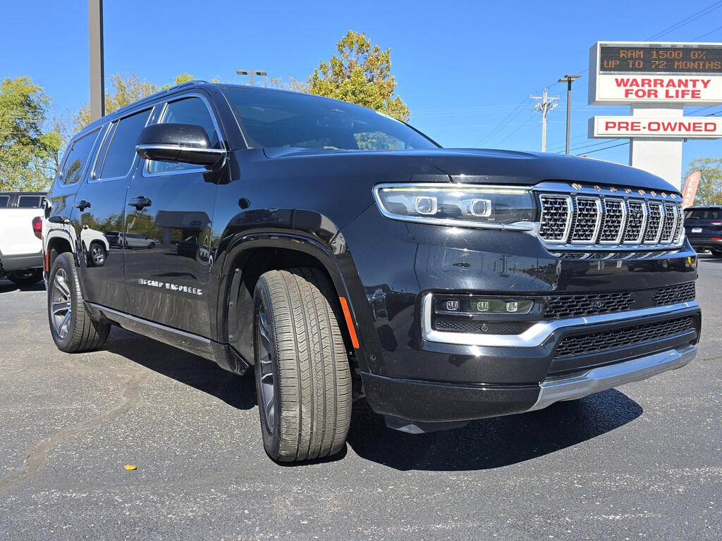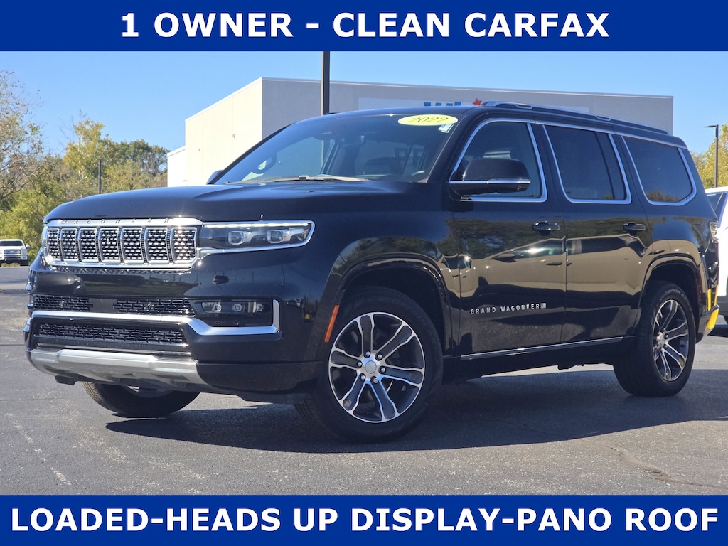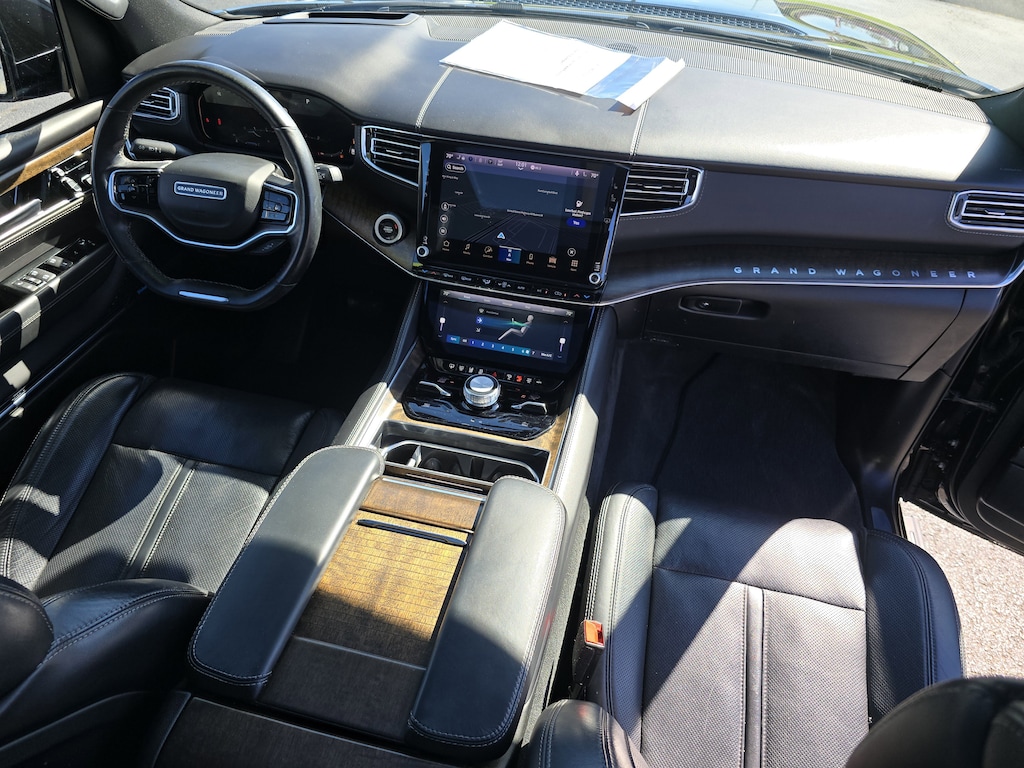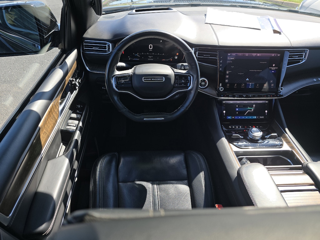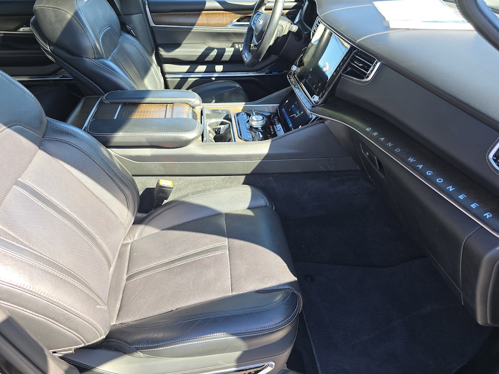 This Jeep Grand Wagoneer has auto-adjust speed for safe following. Keep your hands warm all winter with a heated steering wheel in this Jeep Grand Wagoneer . This Jeep Grand Wagoneer has a clean CARFAX vehicle history report. This 2022 Jeep Grand Wagoneer features a hands-free Bluetooth phone system. The installed navigation system will keep you on the right path. Never get into a cold vehicle again with the remote start feature on this 1/2 ton suv. Apple CarPlay: Seamless smartphone integration for this model - stay connected and entertained on the go! This vehicle is a certified CARFAX 1-owner. The leather seats in it are a must for buyers looking for comfort, durability, and style. An off-road package is installed on this vehicle so you are ready for your four-wheeling best. This unit's Forward Collision Warning feature alerts drivers to potential front-end collisions. Protect this Jeep Grand Wagoneer from unwanted accidents with a cutting edge backup camera system.